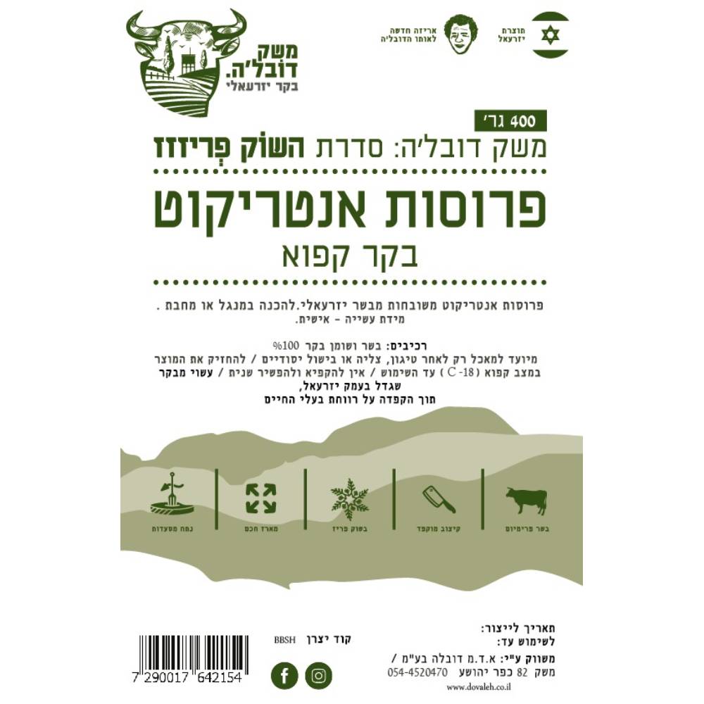 עשוי מבקר שגדל בעמק יזרעאל, ללא אנטיביוטיקה מניעתית, תוך הקפדה על רווחת בעלי החיים.